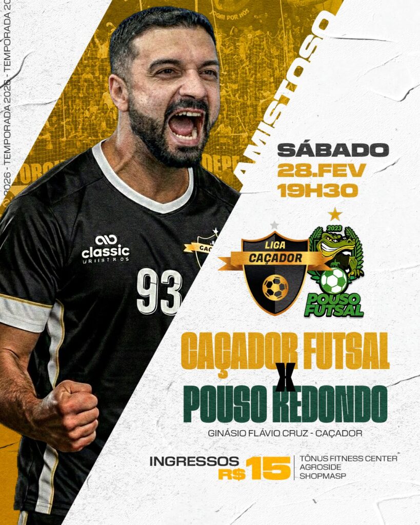 O Caçador Futsal entra em quadra neste sábado, dia 28 de fevereiro, para mais um compromisso preparatório visando a sequência da temporada 2026. A equipe recebe o Pouso Futsal em amistoso marcado para às 19h30, no Ginásio Flávio Cruz, em Caçador.