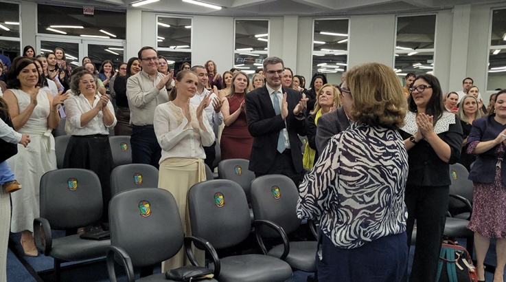 Após a homenagem, Malu agradeceu o reconhecimento e destacou, com emoção, a satisfação de encerrar um ciclo com a certeza do dever cumprido.