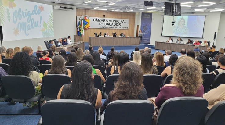 A sessão ordinária desta terça-feira, 12, da Câmara Municipal de Caçador, foi marcada por emoção e reconhecimento à trajetória da servidora Maria de Lourdes Roman Ros Ceratti, conhecida como Malu, que encerra suas atividades profissionais no Município após 25 anos à frente da ACEIAS/COMAM.