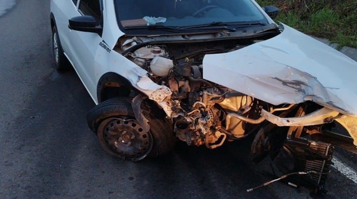 No local, foi confirmada a ocorrência de uma colisão frontal envolvendo dois veículos. Um dos envolvidos foi um Volkswagen Saveiro Robust, com placas de Campos Novos, conduzido por um idoso de 71 anos, que não sofreu ferimentos e permaneceu no local.