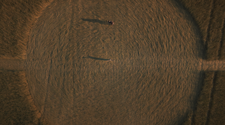 O processo contou com o auxílio de imagens de drone para acompanhar a formação do desenho no campo.