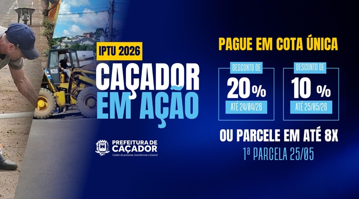 O IPTU representa uma importante fonte de arrecadação de Caçador para garantir qualidade de vida ao cidadão e melhorias nas áreas de saúde, educação, infraestrutura e cultura, dentre outros. De acordo com a Secretaria Municipal da Fazenda, a previsão é que a arrecadação do imposto, baseado nos lançamentos, seja de 14,5 milhões em 2026.