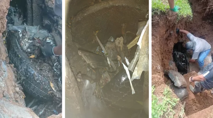 A obstrução na tubulação foi causada pela própria população, que usava o espaço para descarte irregular de lixo