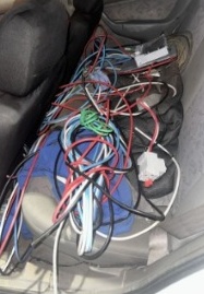 Durante a busca veicular, foram encontrados fios de cobre, extensão elétrica, alicate e um medidor de energia. Questionado sobre a procedência dos objetos, o abordado apresentou versões contraditórias. No local, os policiais constataram sinais recentes de dano no poste de energia e fios cortados.