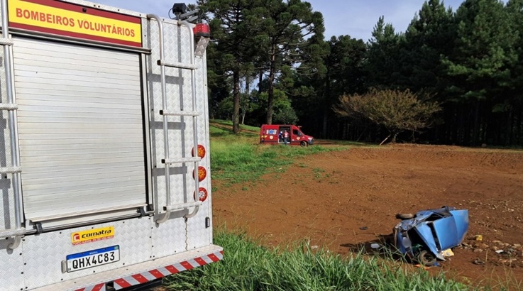 Os Bombeiros Voluntários de Caçador atenderam em conjunto com a Polícia Militar Rodoviária Estadual um sinistro de trânsito do tipo saída de pista, de um automóvel Voyage.