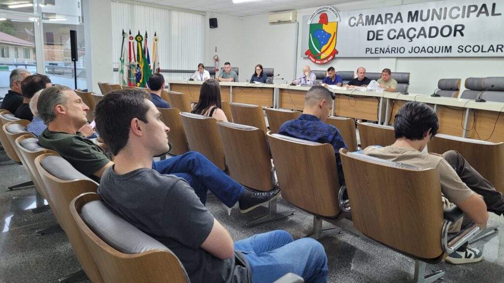 A audiência foi conduzida pelo presidente da Comissão de Finanças, Orçamento e Contas do Município, Fabiano Dobner, ao lado dos vereadores Marcos Souza (relator) e Werik Moraes (membro), e do secretário municipal da Fazenda, Osório Timermann.