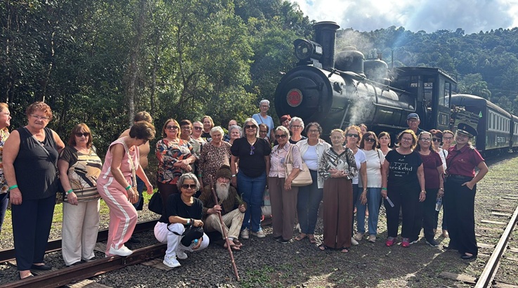 Participantes da Universidade Aberta da Maior Idade (UAMI) da UNIARP Caçador realizaram nesta terça-feira, 7, um passeio cultural às cidades gêmeas de Porto União (SC) e União da Vitória (PR), com o objetivo de conhecer o Projeto Trem das Etnias.