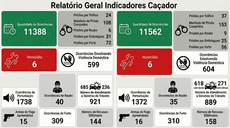 Os indicadores de ordem pública do município de Caçador apresentaram avanços importantes ao longo do ano de 2025, refletindo o trabalho contínuo de polícia ostensiva, ações preventivas e repressão qualificada à criminalidade executada pelo 15º Batalhão de Polícia Militar.
