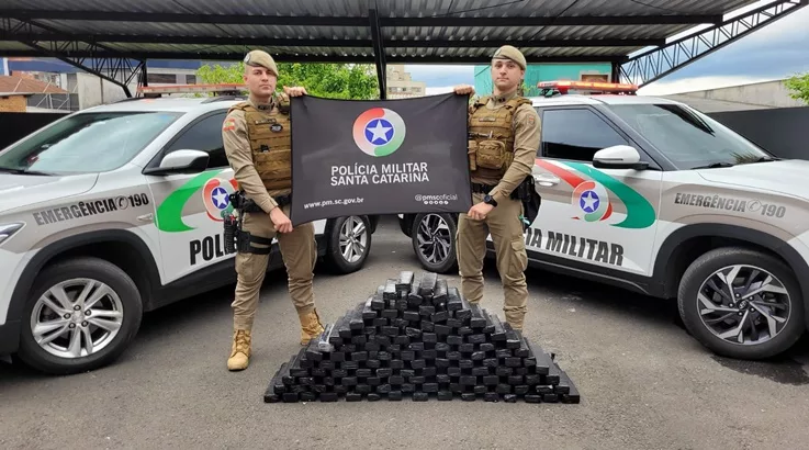 PM intercepta veículo e encontra 89 kg de maconha em Caçador