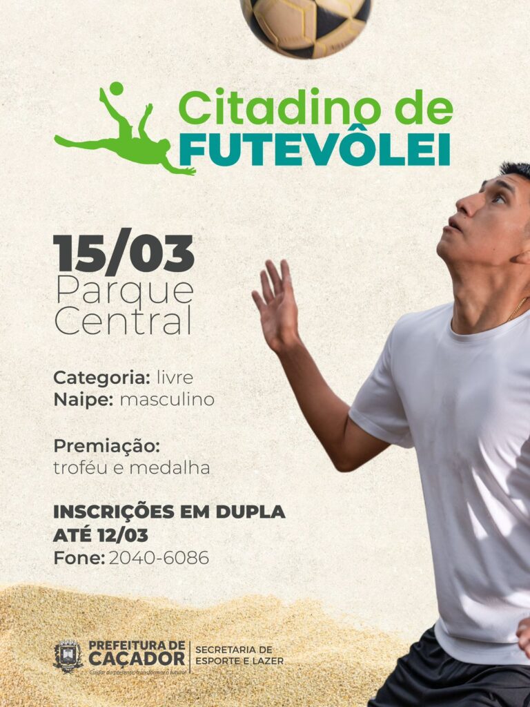 A Prefeitura de Caçador, por meio da Secretaria de Lazer e Esporte, está com inscrições abertas para o primeiro Citadino de Futevôlei do município. A competição é inédita e promete movimentar os praticantes da modalidade na cidade.