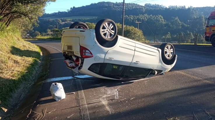 Três pessoas saem ilesas de capotamento de Honda Fit em Rio das Antas