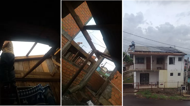 “Houve destelhamentos em diversos pontos da cidade. A Defesa Civil entregou lonas para 10 famílias, para atendimento de emergência. Houve granizo na região da Taquara Verde e quedas de placas, sendo uma delas, nas proximidades do Atacado Via. Era uma placa grande e estava atrapalhando o tráfego”, destacou.